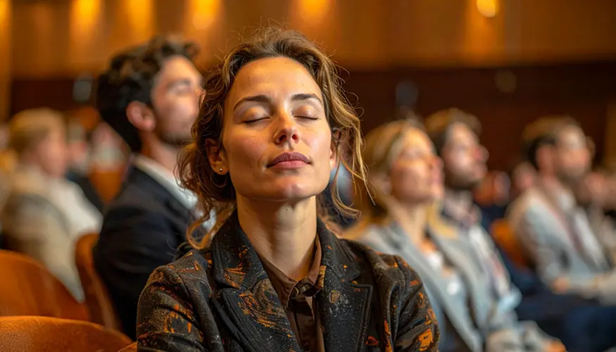 The power of silence and mindful listening. A first reset experience that instantly calms participants and sharpens their focus.